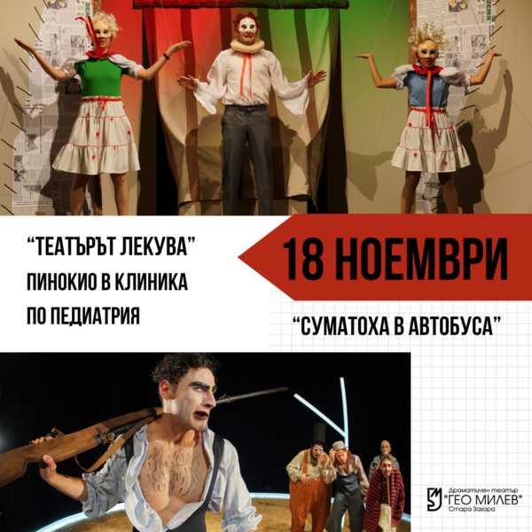 "Театърът лекува" - артистите от ДТ "Гео Милев" гостуват на малките пациенти от Клиниката по педиатрия към УМБАЛ "Проф. д-р Ст. Киркович" с откъс от представлението "Пинокио".